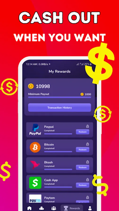 Earn cash money rewards by trying free games, apps, & watching short videos!