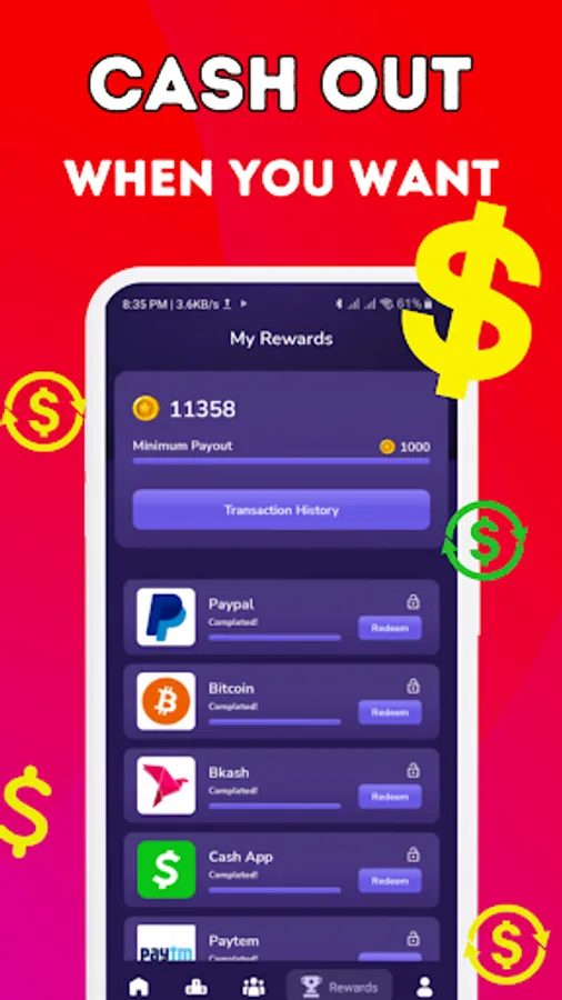 Earn cash money rewards by trying free games, apps, & watching short videos!