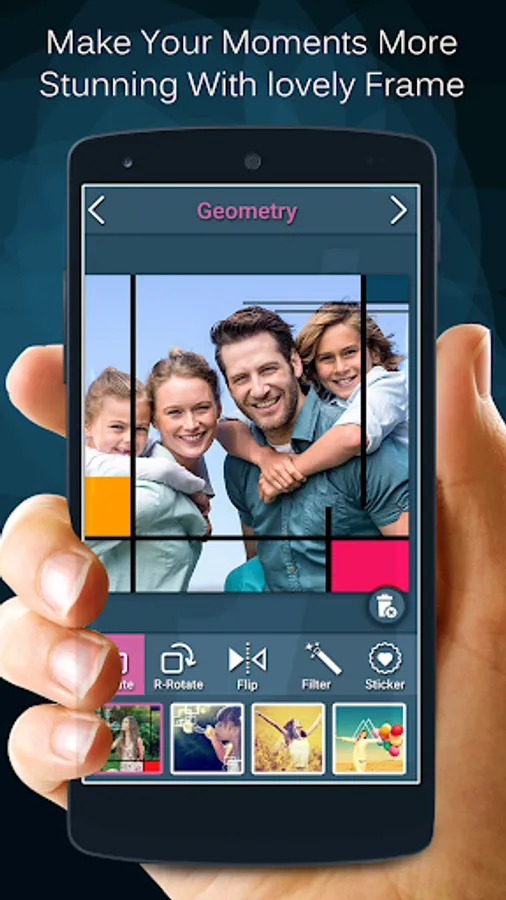 This app design frame for family photos, baby photos, mom- dad, love photo, grandmother, grandfather, selfie and couple photos. It allows you to make best family portrait by letting you to select the photos from the gallery and stitch them into photo grid and allow panning and zooming each and every image that you added to family pic collage layouts.
