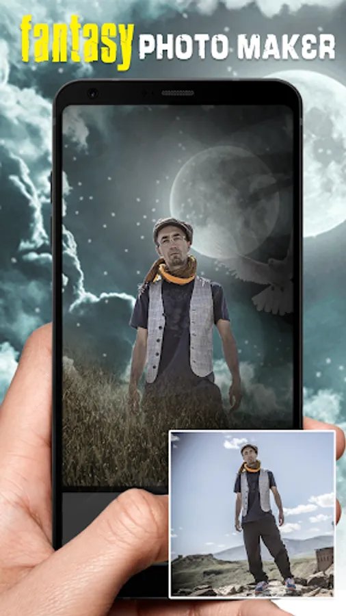 Fantasy Photo maker app allows to change photo into fantasy photos and transform your images in fantasy image by replace photo's background and apply artistic blending effects on your photo. It replace your photo background with fantasy scenes and mix colors and to convert ordinary photo into fantasy artwork.You can change ordinary photo into fantasy photo manipulation. Create a nice looking abstract photo artworks with photo manipulation change background & blending.