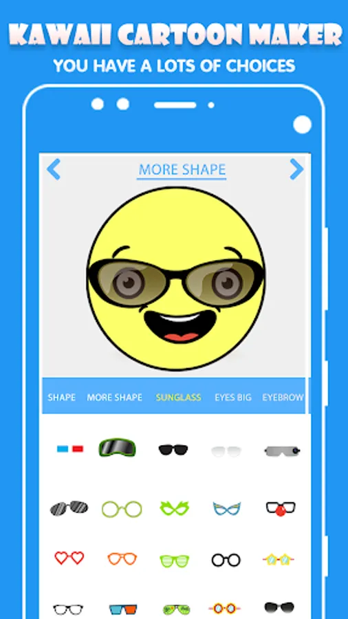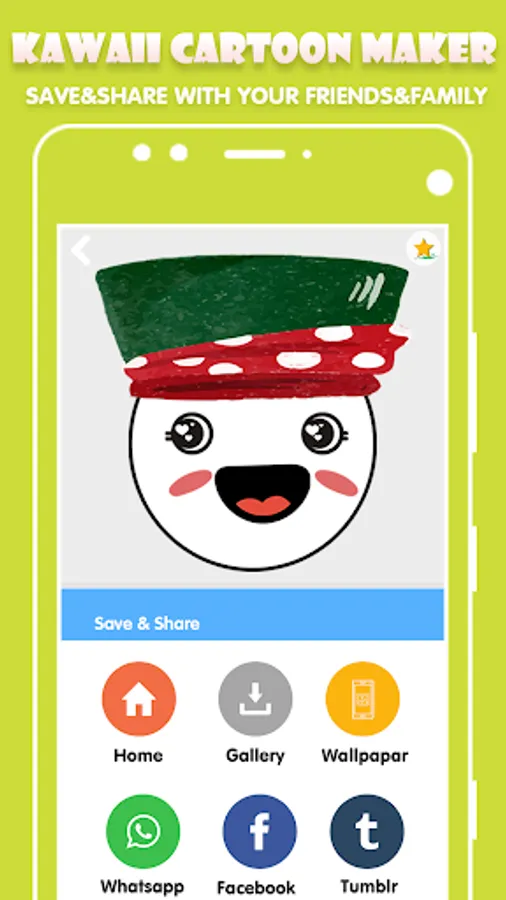 Kawaii cartoon maker is a very powerful and cute cartoon creator app. Make your own kawaii cartoon sticker by combine various face parts of cartoon.