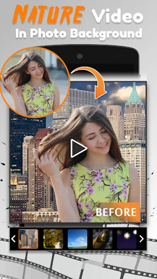 You can convert your photos into live video with nature background. Our photo background editor tool will automatically replace your photo's background into videos. Friends now change your photo background, erase background and add fog, rain, city, universe,sea,beach,tree, etc video clip in your photo and share to all friends on all social network like Facebook,Instagram, Twitter, Watsapp etc.