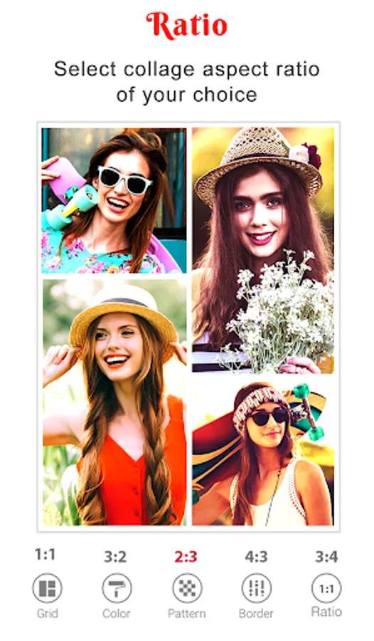 You can change collage aspect ratio as per your choice in the photo layout & picture editor. You can select suitable photo layout ratios for social platforms like Instagram, Facebook and more using this grid photo.