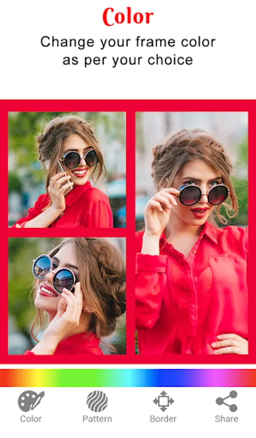 Supports a wide variety of collage layouts and photo with grids, side by side photo for picture editor & pic collage making. The adjustable border feature enables us to set the width of the border in picture editor & photo by grid. The color and pattern of the border can be changed in free collage apps & photo by grid. Try out different patterns and colors, for the border, to make beautiful pic frame in photo by grid & photo collage free. This photo grid app is very easy to use.