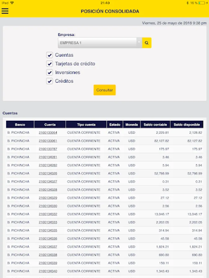 • Balances and movements enquiries of accounts, investments, credits and cards.