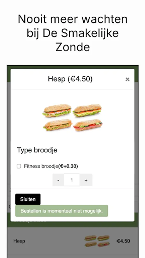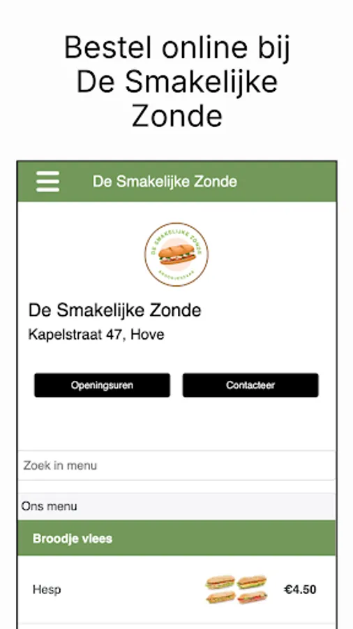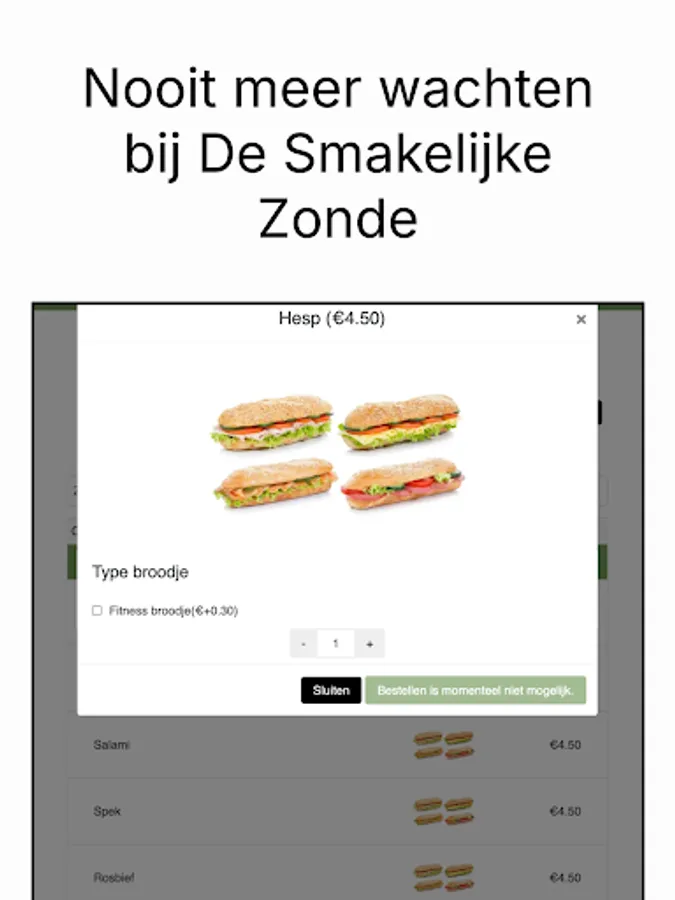 Never wait in line again with the Smakelijke Zonde app! Place your order through our app and pick it up at your chosen time.