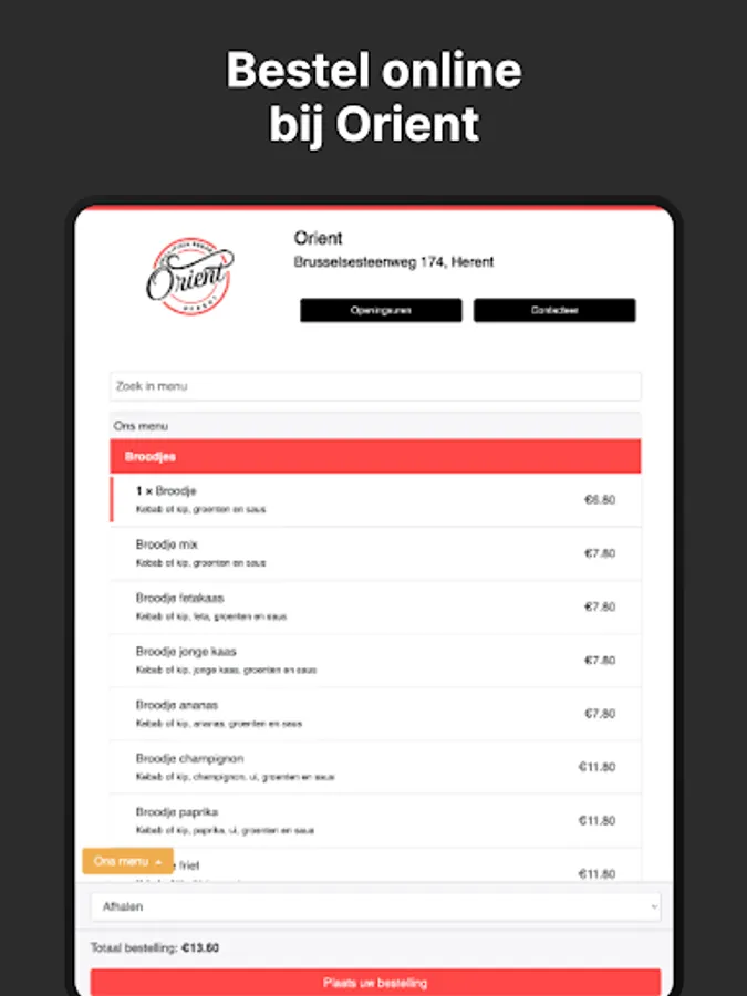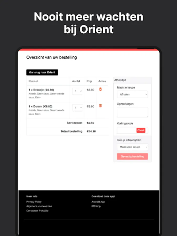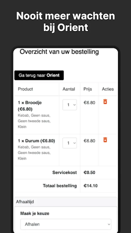 Never queue again with the Orient app! Place your order via our app and come pick it up at the chosen time.