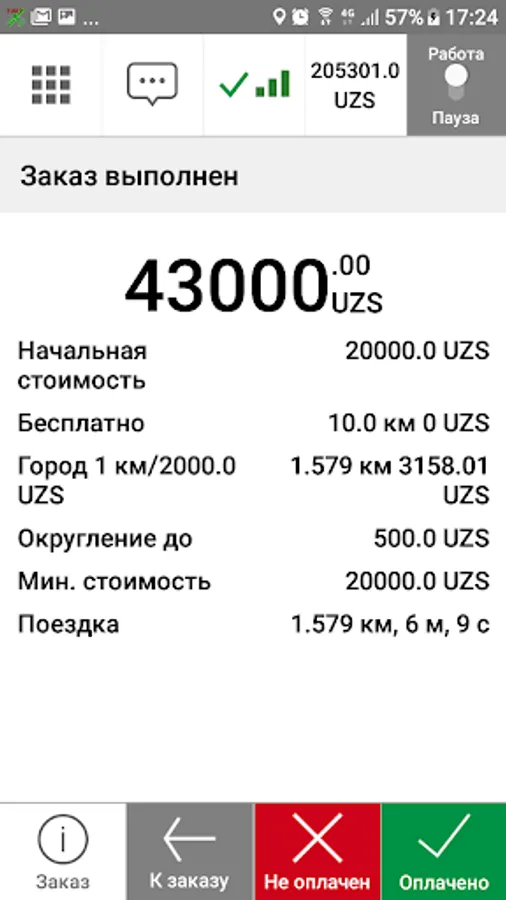 - Taximeter, which considers the cost of the tariffs configured in the program