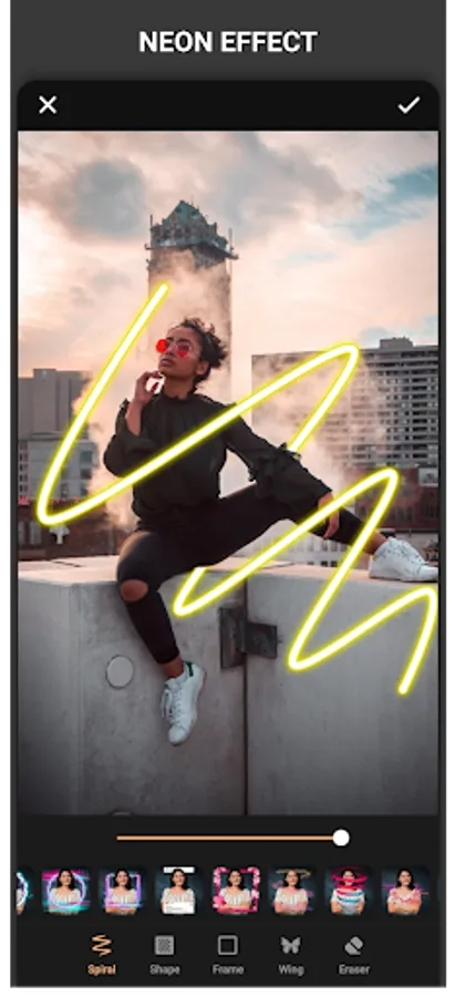 – Draw – Paint & Neon : draw on the image using draw tool or neon tool with changing the color & size.