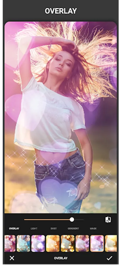 – Overlay Effect : More than +90 effect with adjust the opacity of the filter to make the photo more pretty.