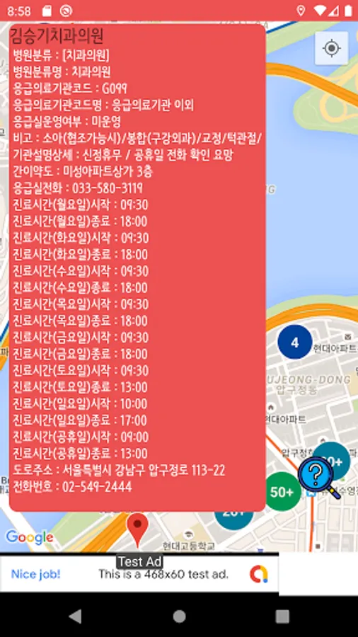 Displays nationwide hospital clinic information (city/city/city/county/day of treatment/institutional/treatment subject).
