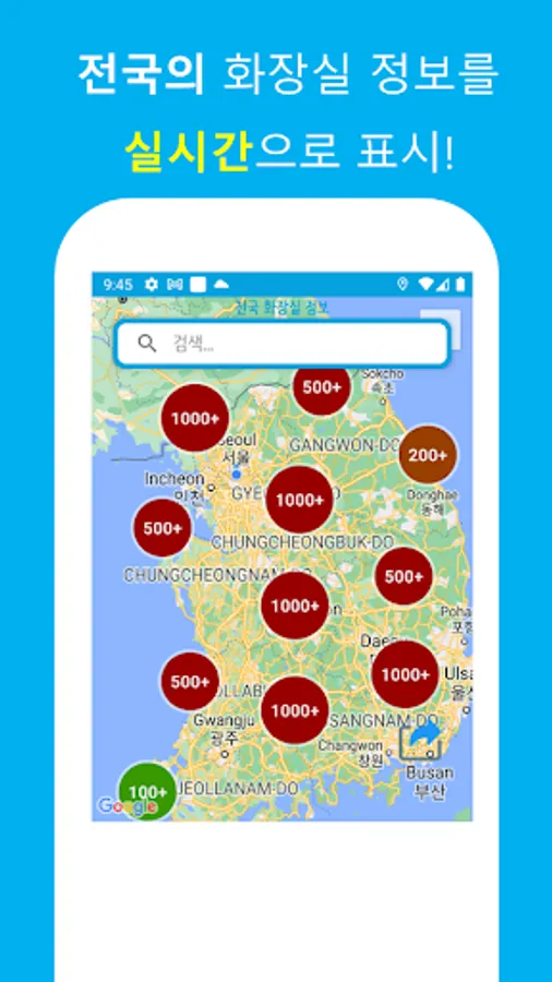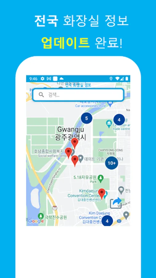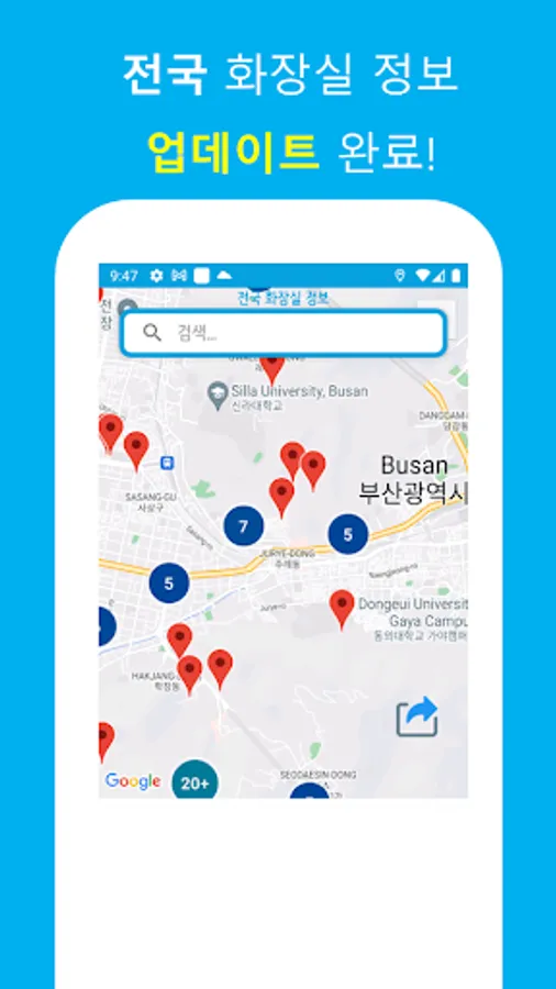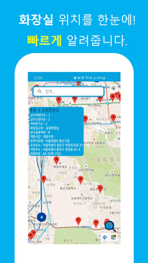 National public toilet information (public toilet location, opening hours, etc.) is displayed on the map.