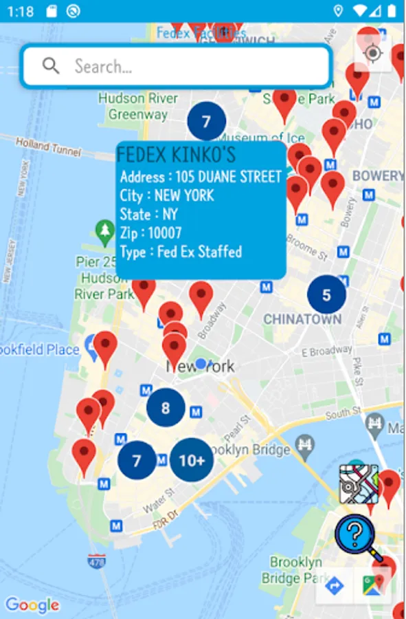 This app displays the physical locations of USA FedEx facilities.