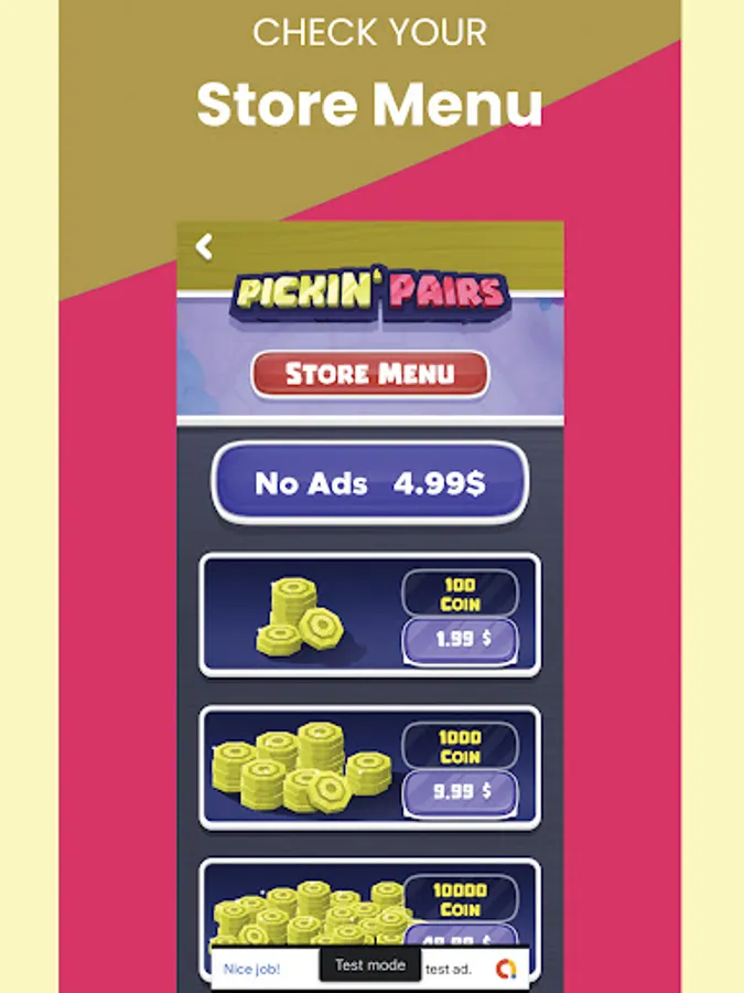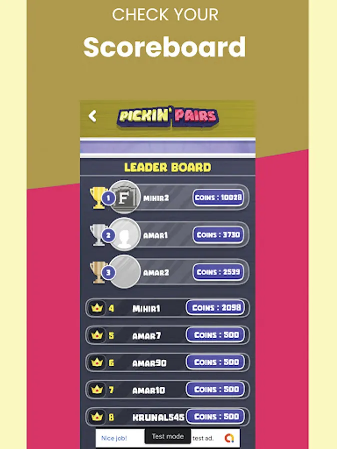 Compete with friends and family to see who can achieve the highest score, and keep playing to unlock new levels and challenges. Whether you're looking for a quick and fun game to play on the go or a way to challenge yourself and improve your skills, Pickin' Pairs is the perfect choice.