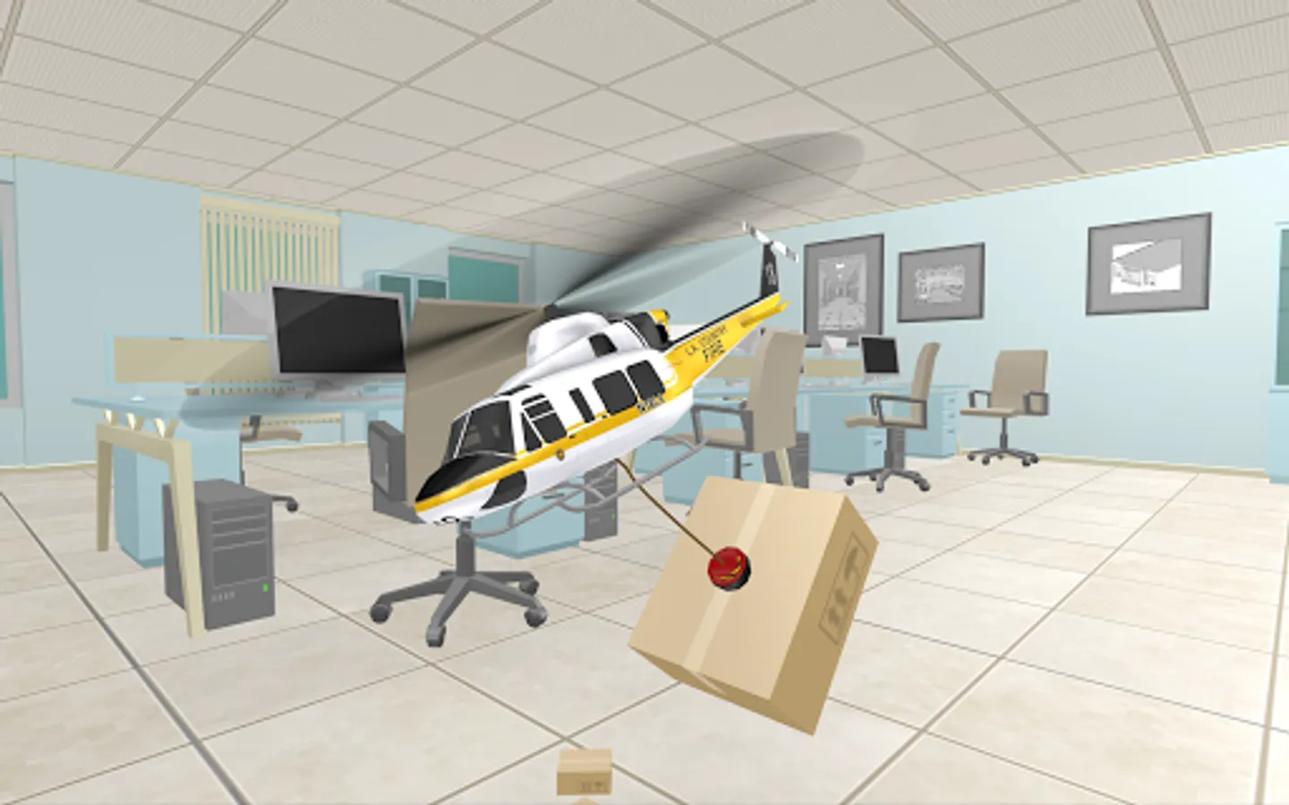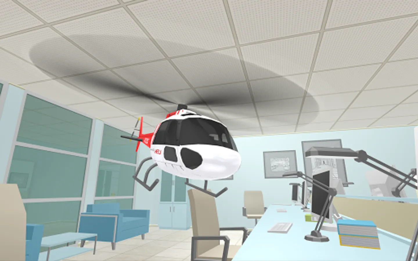 Take flight in amazing remote-controlled helicopters in a huge office workplace environment ready to explore, filled with tons of areas to play exciting new helicopter missions, copter flying stunts, and more to fly around in!