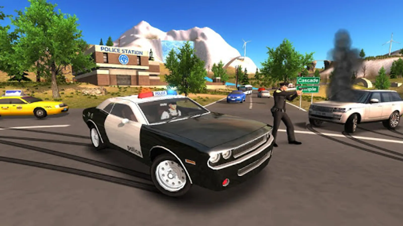 Take control of 9 police cars (SUV and 4x4) in a huge forest and mountain environment : 16 km² area, 30 km of roads !