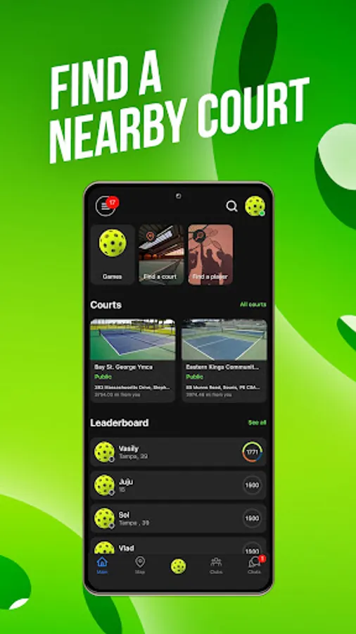Once you gain access to the community you can improve your skills by finding an opponent at your suitable level - for this we have developed our own unique ranking system. You can find, book and pay for a pickleball court or find a professional coach, play a ranked or a practice match, join a club or compete - all within a few clicks.