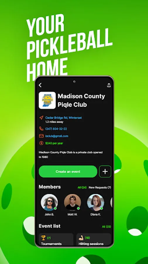 Once you create your own pickleball club in the app you will be able to also create your own tournaments and broadcast them to the whole community. You will be able to manage the tournament schedule and communicate with your club members, setting up matches and looking for new club members.