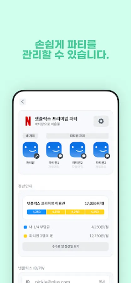 Use the safe and convenient OTT account sharing service through automatic matching and automatic settlement.