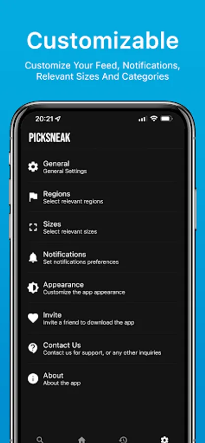 Fully customize the notifications you wish to receive and select the relevant sizes.