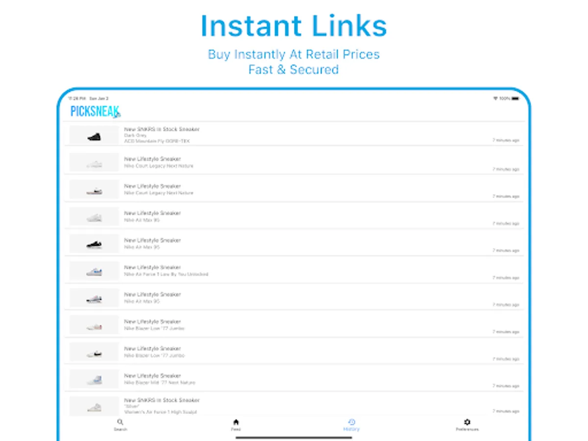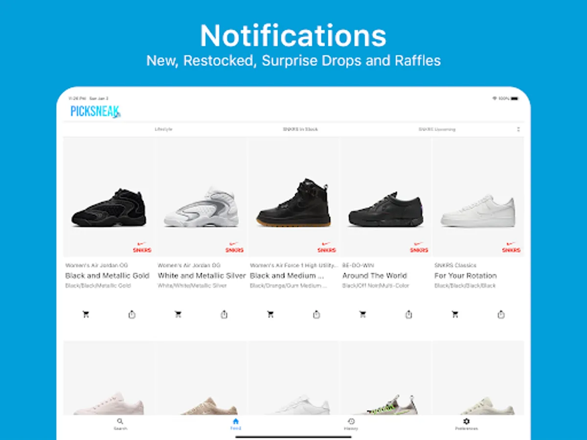 Get notifications of casual drops, surprise drops, in stock & restocked sneakers, including Nike’s “SNKRS” categories.