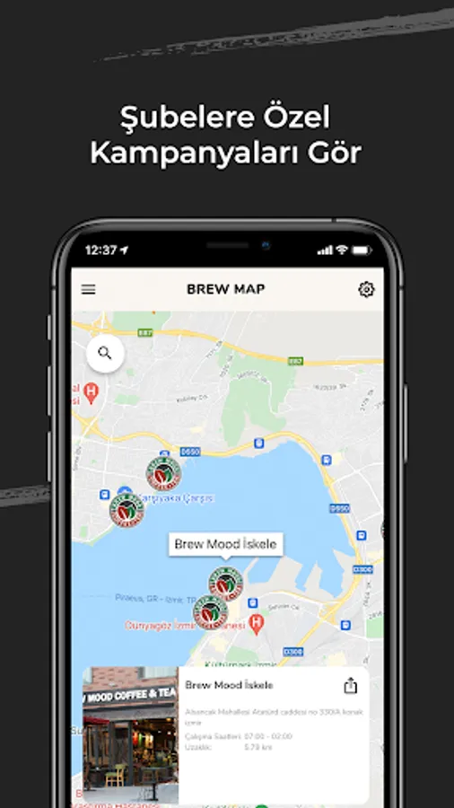 - You can see the closest Brew Mood Coffee & Tea branch to you, and you can examine the special offers for the branches.