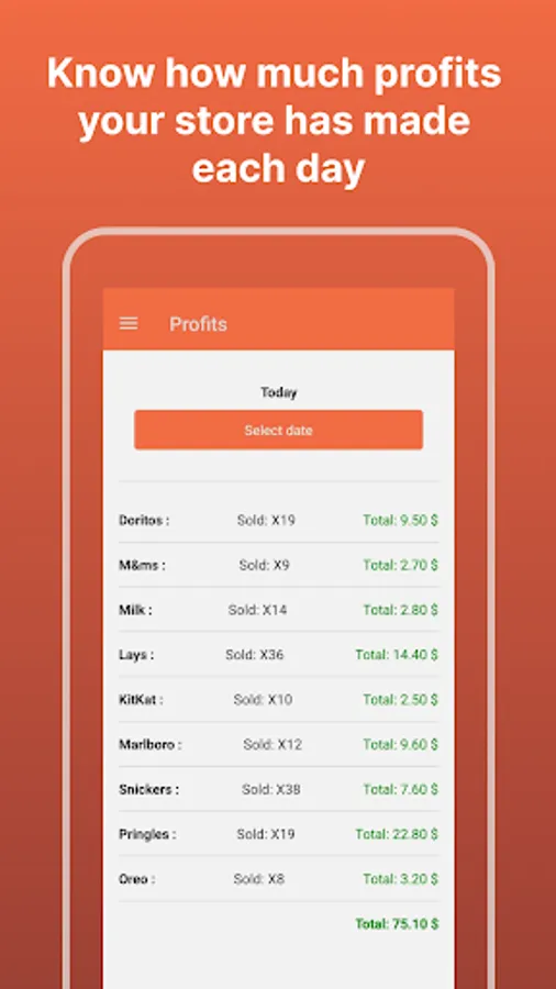 ▶ And each day before you close your store you add all the products that you have sold to your today’s Sellings
