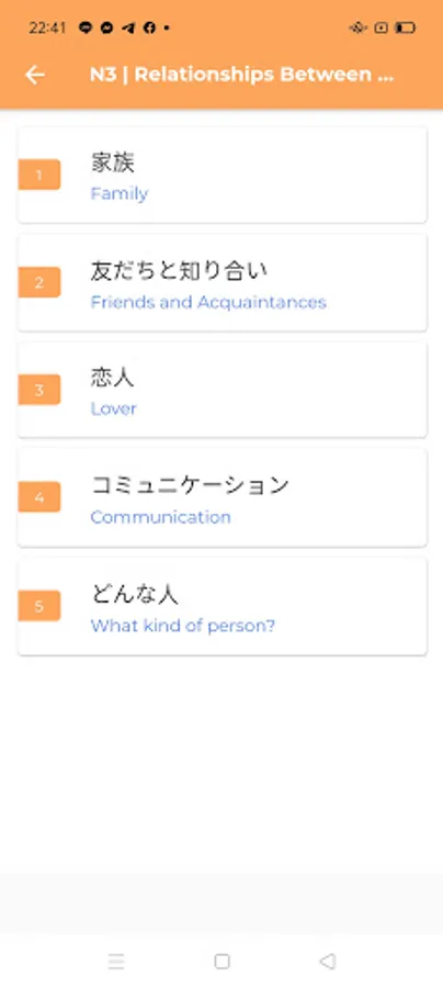 2000 Essential Vocabulary for the JLPT N3 app structure: