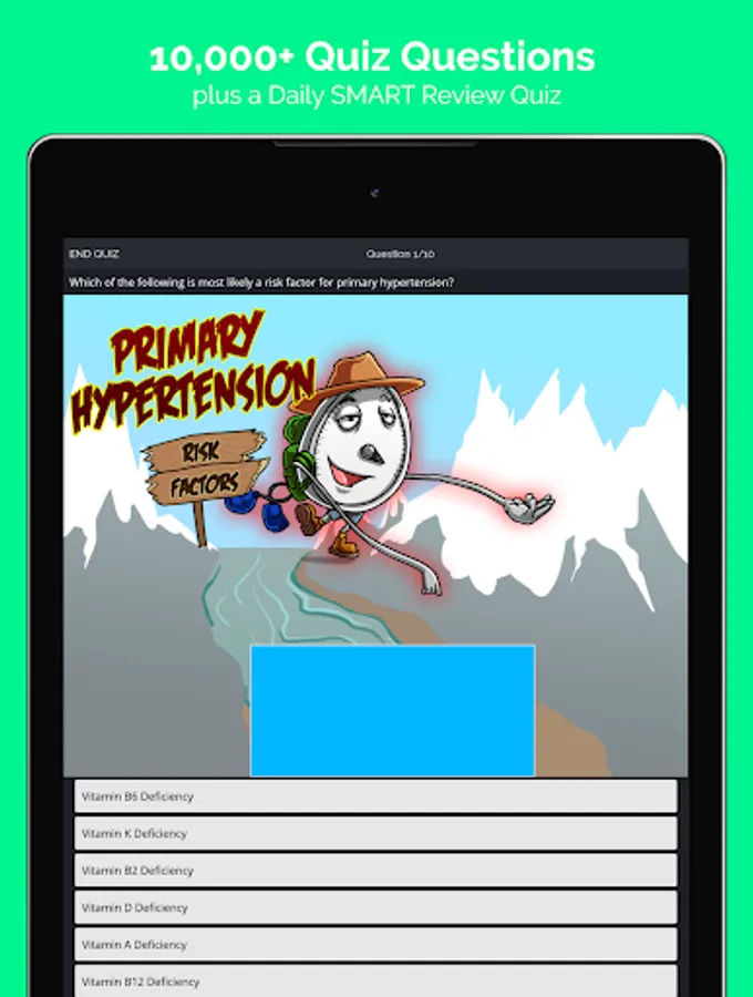 Every day for FREE you can watch one Picmonic video of your choice and do 20 quiz questions plus the Daily Quiz with Spaced Repetition. Get unlimited access with an affordable subscription.