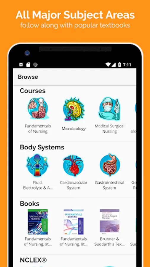 10,000+ quiz-style practice questions & 1,000+ entertaining nursing mnemonic videos covering all major subjects. Used by over HALF A MILLION STUDENTS.