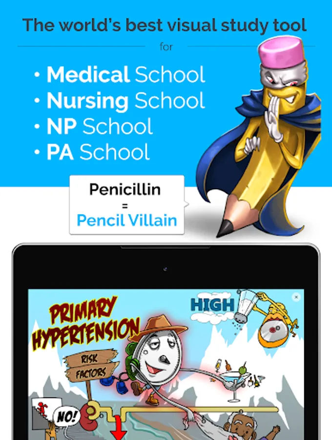 Ditch boring textbook memorization with nursing mnemonic videos. Recall information faster and retain it longer to ace your nursing school courses, clinicals & NCLEX-RN with less study time using unforgettable images and stories...it's Cliff Notes meets Saturday morning cartoons.