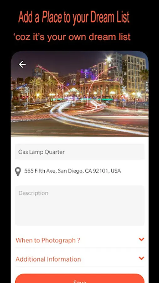 1. Add a ‘Place’ along with its GPS coordinates, time, month and season to photograph and many other minute details about accessibility.