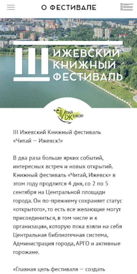 For operational information should be on the web. Online support for the festival is traditionally made by the company "Peak", to develop a site chitayizhevsk.rf and mobile applications.