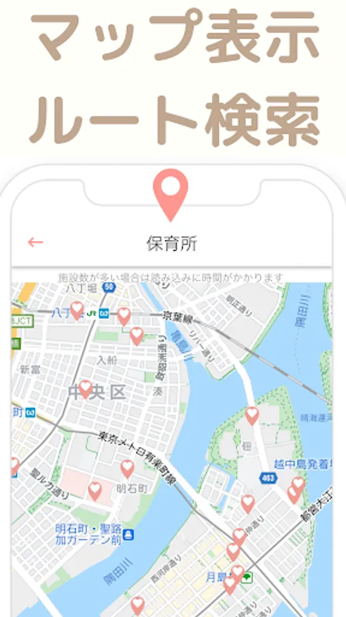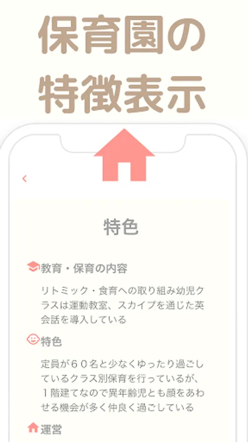 Even if you are not familiar with finding a nursery school, just enter the kindergarten area and the corresponding nursery school will be displayed. Since proximity to home is important for attending a nursery school every day, we also support map search.