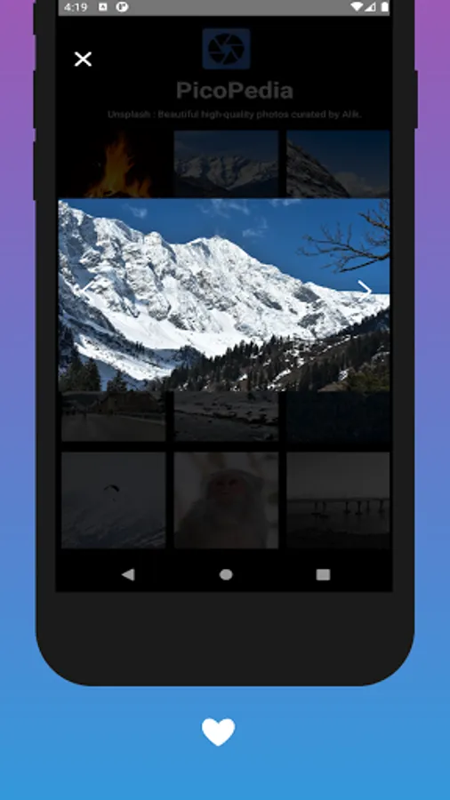 This app was created for showcasing my photos which I have take and this app is created dynamically so that whenever I take a photo and upload it will directly reach your android devices as soon as I upload my photos. I have created this app especially for those who are looking for inspiration for photography. Happy coding! Happy Photography!