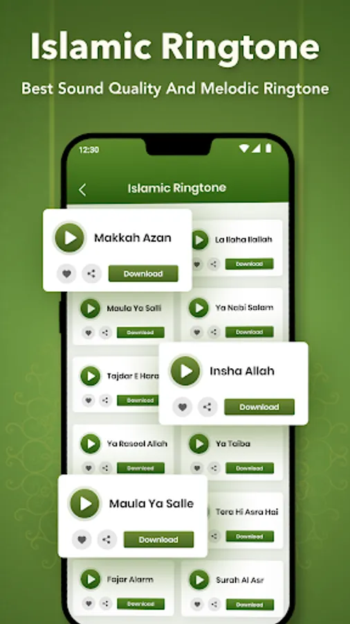 Install Islamic songs free music ringtones and feel blessed in your heart. Choose among many popular ringtones and set your favorite as text message ringtones, wake up alarm ringtones or notification ringtones.