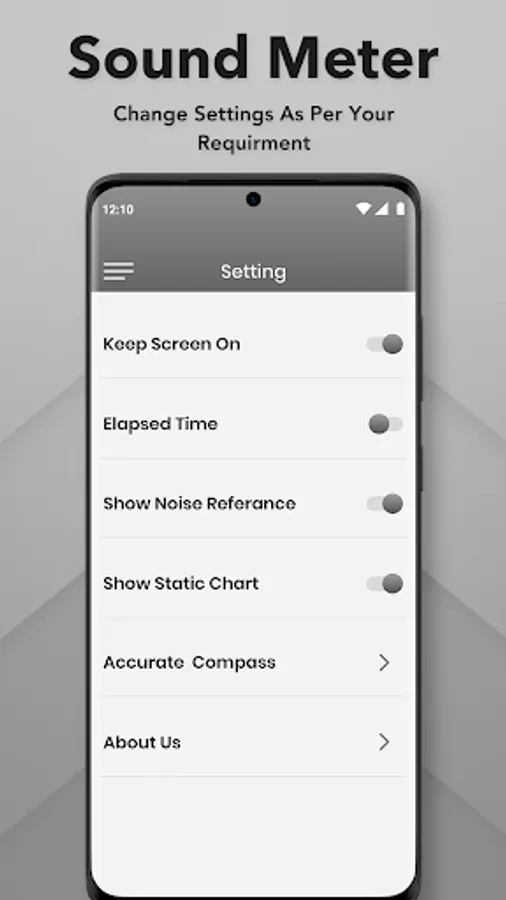 - Show real-time decibel in a dial, and the decibel change in a diagram.