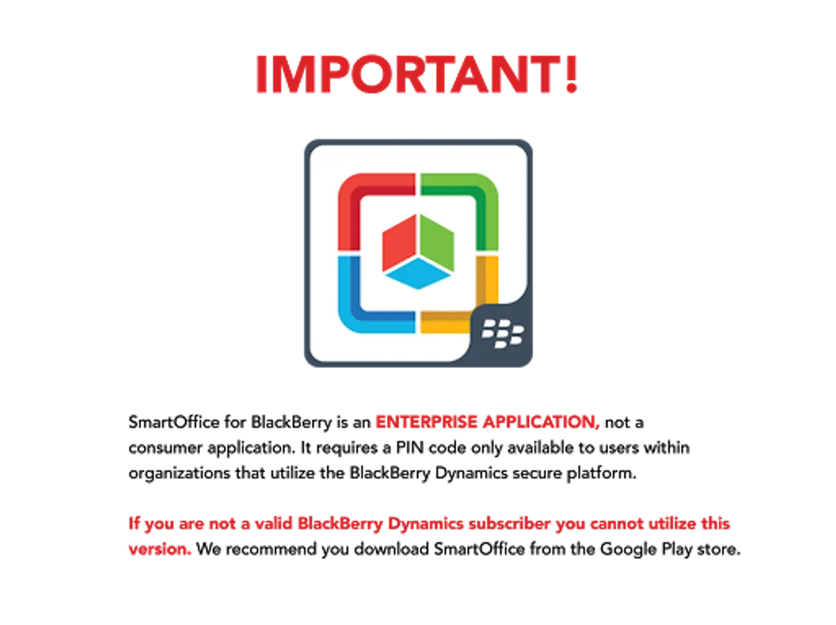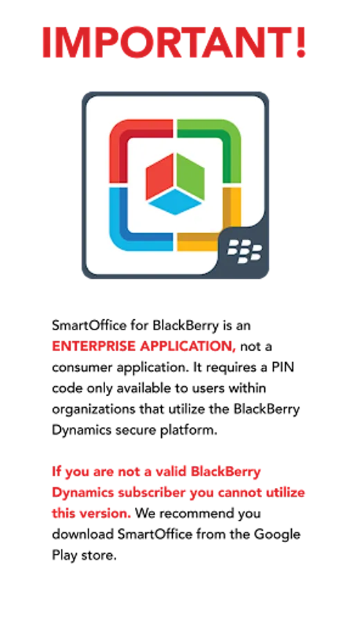 IMPORTANT: This application is designed for use by organizations that utilize a BlackBerry Dynamics secure platform. If you are an individual consumer or a company which does not utilize BlackBerry Dynamics, please download the SmartOffice app instead.