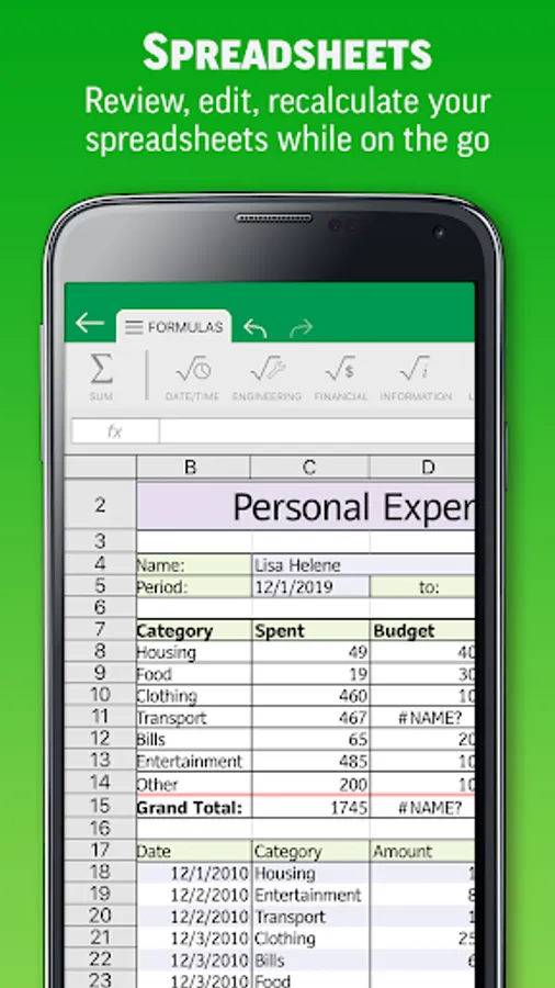 •Chart display and a wide range of formulas