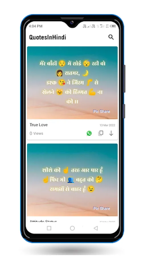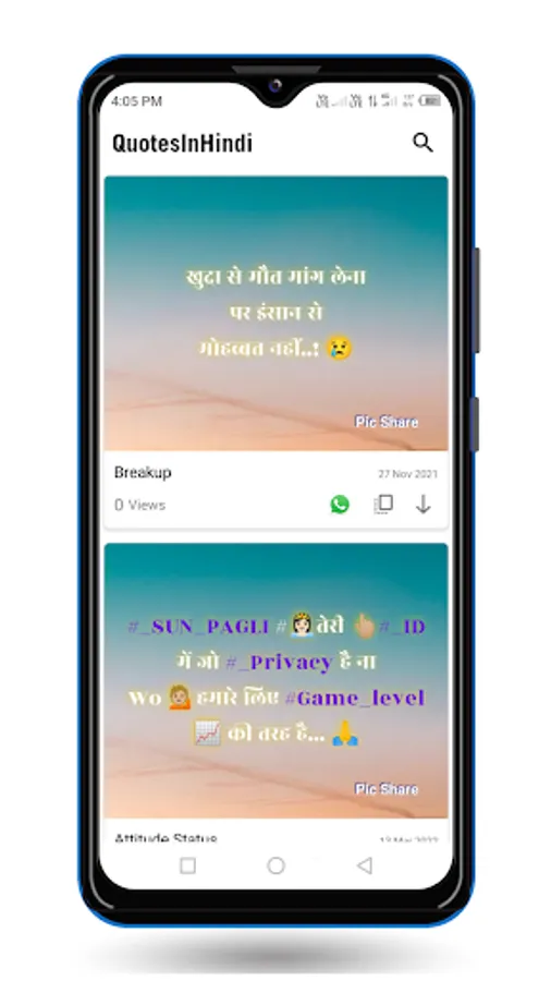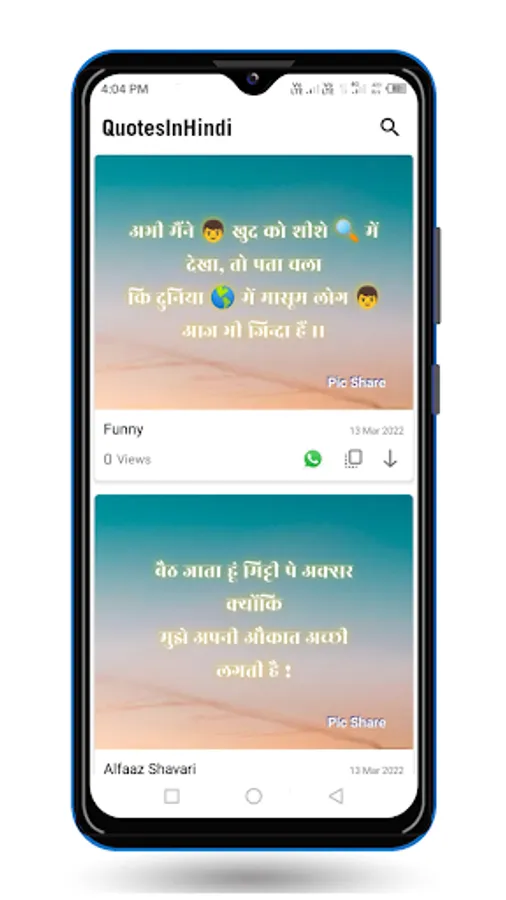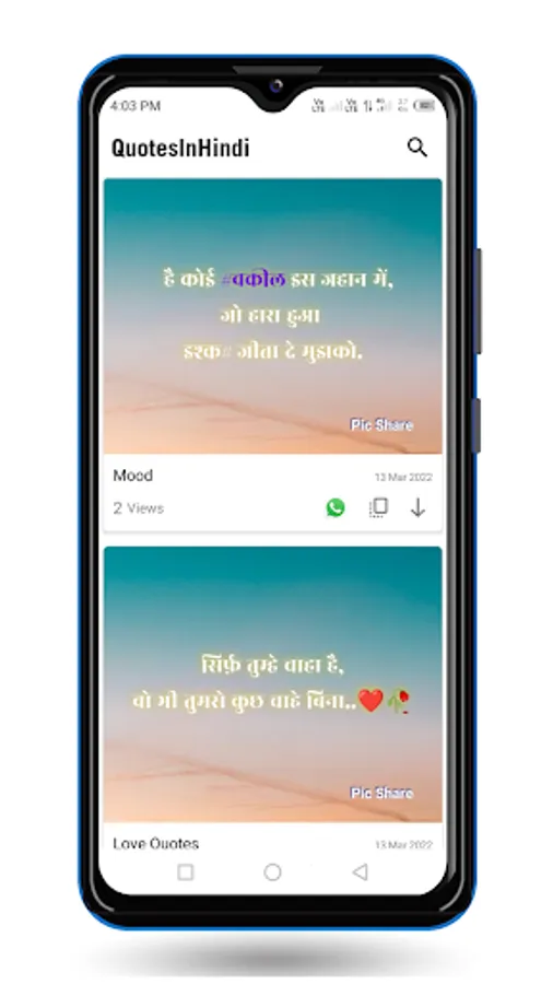 A large collection of Hindi Quotes Status and Shayari. You can Share with your family friends and your love.