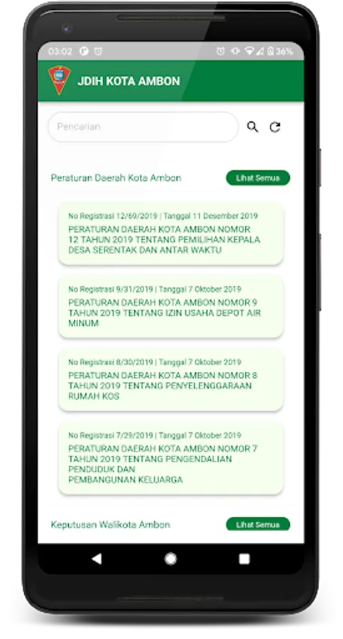 The Ambon City Legal Documentation and Information Network is an application that presents information on regulations issued by the Ambon City Government and other laws and regulations.