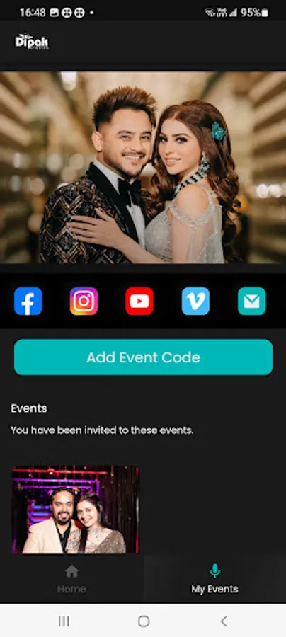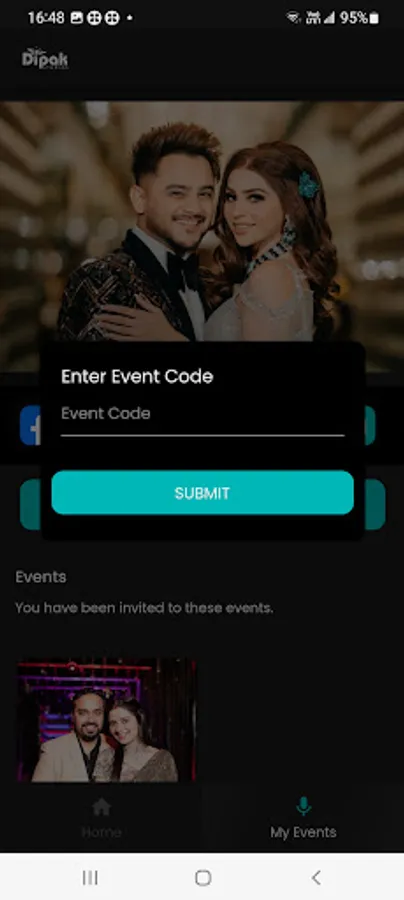 Just click on the link shared with you to access the event or enter the event code to get access to your event.