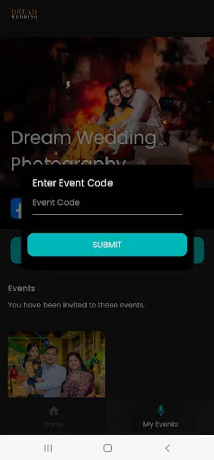 Just click on the link shared with you to access the event or enter the event code to get access to your event.