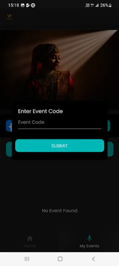 Just click on the link shared with you to access the event or enter the event code to get access to your event.