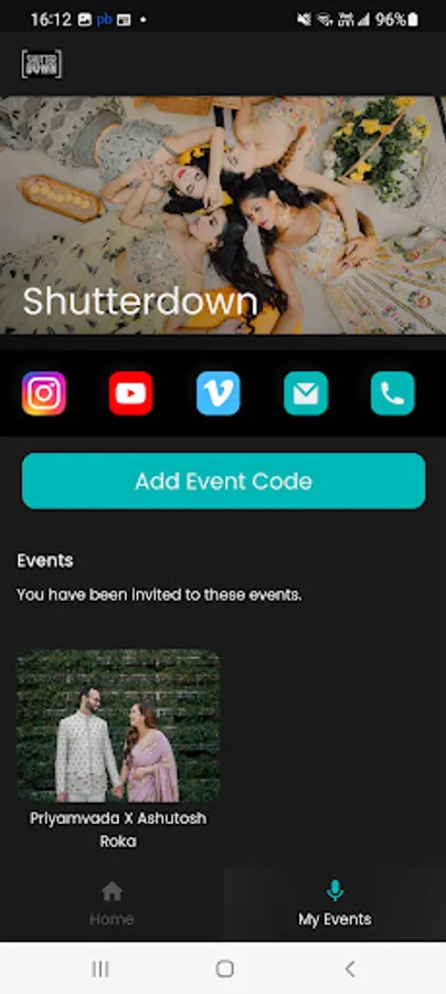 Just click on the link shared with you to access the event or enter the event code to get access to your event.