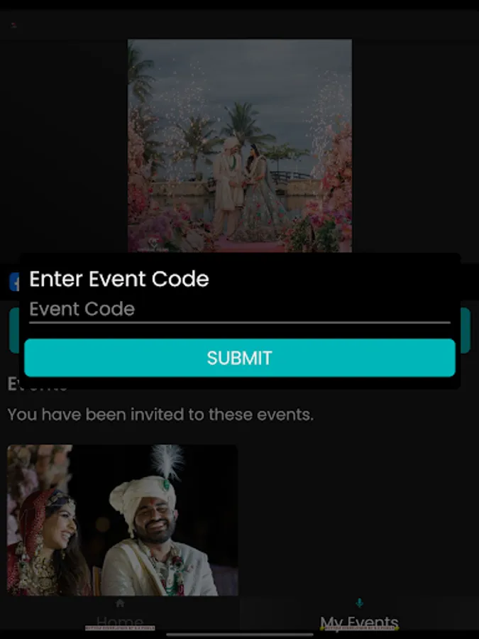 Just click on the link shared with you to access the event or enter the event code to get access to your event.