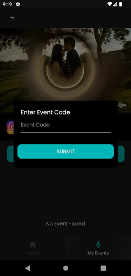 Just click on the link shared with you to access the event or enter the event code to get access to your event.