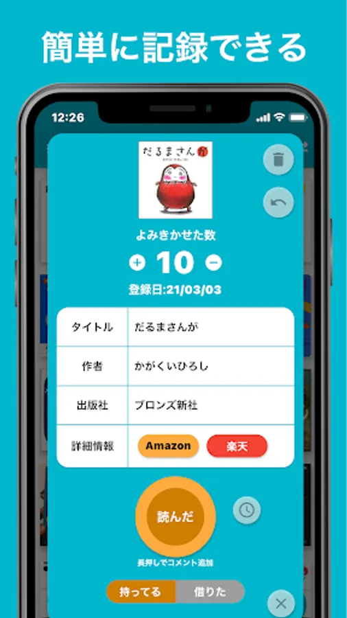 After registering a picture book, you can select the status of "Owned" or "Borrowed", so you can easily manage which picture book is borrowed from the library.