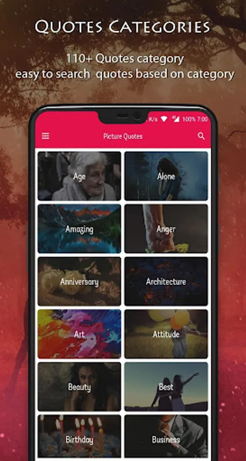 ✪ Picture Quotes and Creator contains more than 110 Quotes Categories like