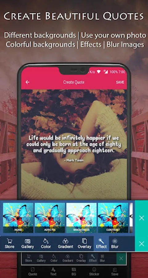 Picture Quotes and creator app helps you to create your own quotes with a beautiful background images, colors or your image as background.